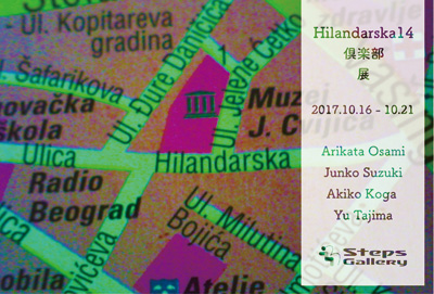 ヒランダルスカ14 倶楽部 展 2017年10.月16日(月) - 10月21日(土) 12:00 - 19:00 長見 有方 鈴木 純子 古賀 亜希子 田島 木綿 〒104-0061 東京都中央区銀座4-4-13 琉映ビル5F
